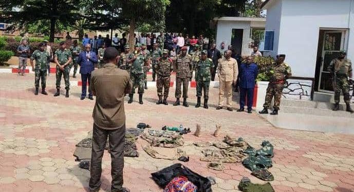 Lors de son arrestation, ce présumé élément du groupe d’autodéfense Zaïre et collaborateur de la rébellion du M23 était muni des tenues militaires dont celles du M23/RDF. Son sac contenait également du chanvre, une paire des bottes militaires et d’autres biens.