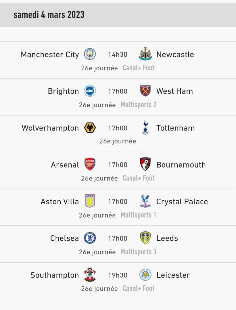Le championnat anglais, Premier league se poursuit ces samedi 4 et dimanche 5 mars 2023. Plusieurs rencontres comptant pour la 26ème journée sont à l’affiche. Découvrez ici le programme de ces matchs.