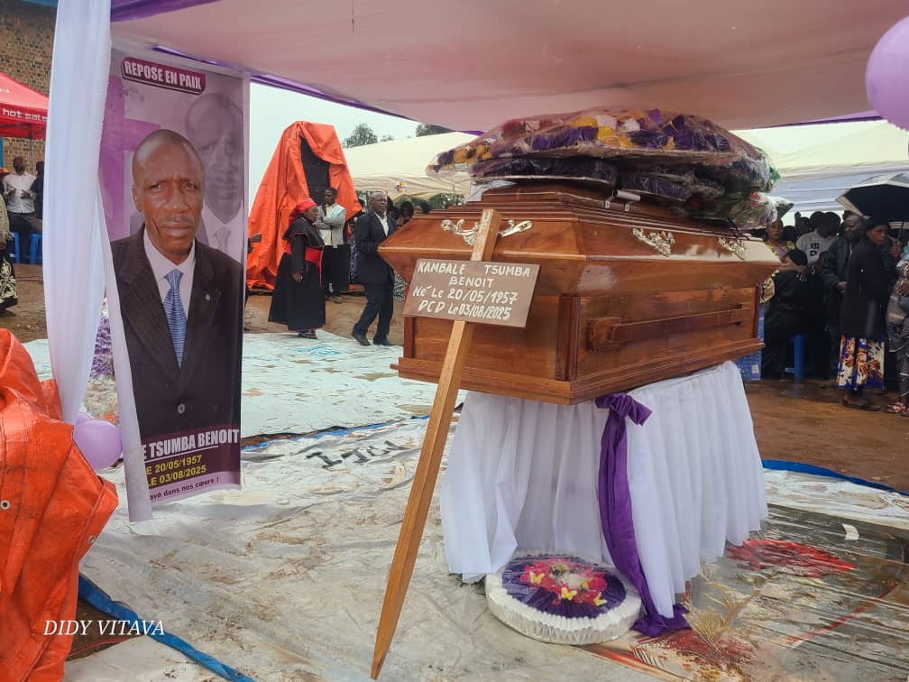 Le corps du diacre Tsumba Benoît lors du culte de suffrage à l’esplanade de la paroisse de Katwa-Vukaka