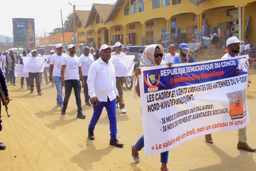 Les agents et cadres des antennes territoriales du P-DDRCS Nord-Kivu ont manifesté dans les rues de la ville de Beni, ce lundi 8 décembre. À travers cette manifestation, ils réclamaient le paiement de 38 mois d’arriérés de salaire, leurs primes et avantages sociaux.