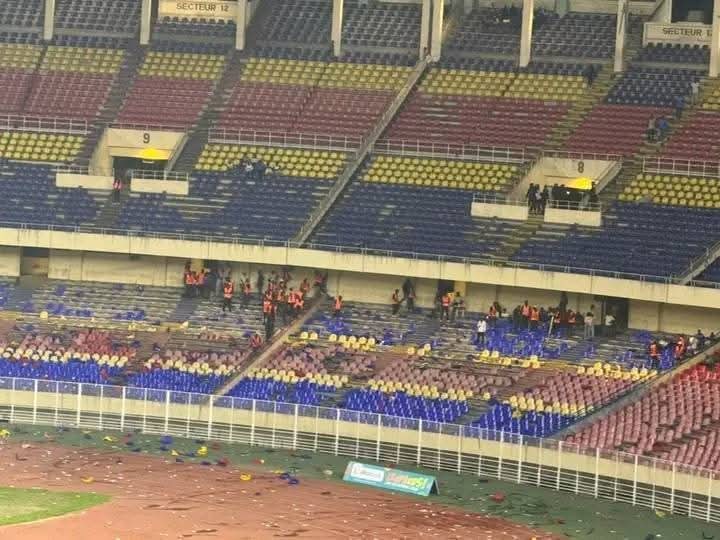 Des bancs arrachés, des vitres brisées, du matériel saccagé, bref le décor post-match a choqué plus d’un. Ce débordement de violence a provoqué une vive réaction du gouvernement congolais.