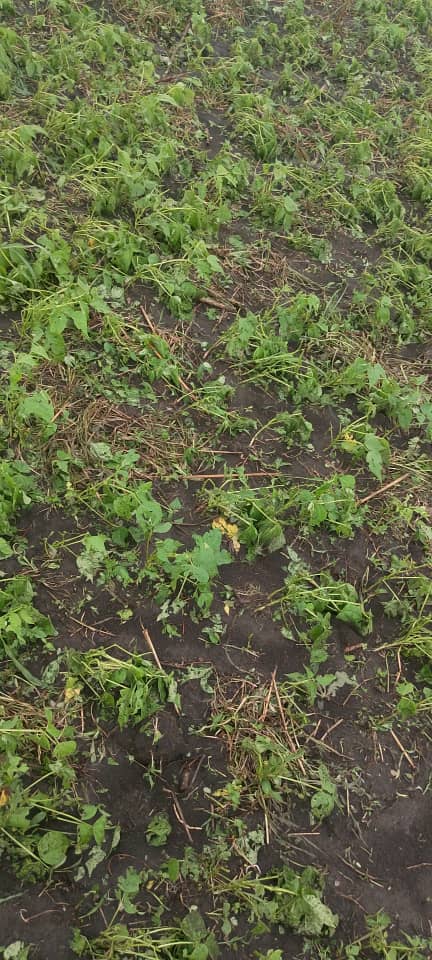 « Je ne sais pas quoi dire, je suis vraiment déçu de cette situation car je ne m’attendais pas à ça. Les haricots étaient déjà dans la phase de la production des fleurs et d’autres des haricots (Miteja) mais la pluie est arrivée avec un vent violent et des grêles, et elle a tout détruit. Les maïs aussi n’ont pas été épargnés » témoigne Kavira Marie-Louise, agricultrice de Kahunga